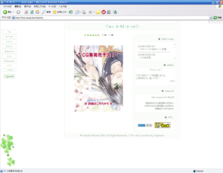 しかしそもそもindexじゃないところをお気に入りにしていたり、ブログを直接お気に入りにしていたり(そんな奇特な方がいるかは別として)、TOP絵をクリックしてない方には意味不明な話ですね(笑)。