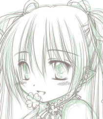 もうホント線が汚いです; でもどうせペン入れする時に綺麗にするのでいつもこの程度です。「大体こんな感じ~」な雰囲気が掴めればOK。でも表情だけはこの時から丁寧に描きます。そしてラフの方が可愛く描けたなと思う事も多々…orz