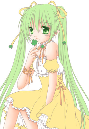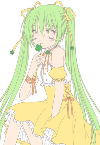 プロフィールとかは全く考えてないんですが、クローバーの妖精という設定。身体の伸縮は自在で小さくなったり大きくなったり出来ます。外見は緑の瞳に黄緑のストレートロングをツインテールにしてるのがデフォルト。