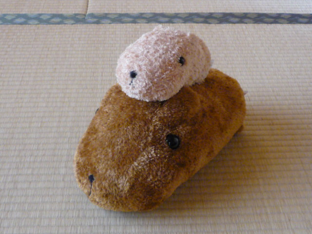 カピバラさんのぬいぐるみは何年か前から東●ハンズとかで見るたび自分で買いそうな勢いで見てたので、尚の事嬉しかったですv このゆるっとした可愛さがたまらんvv もっふもふした手触りが気持ちよくてお気に入りv 冬になったら抱いて寝るんだーv