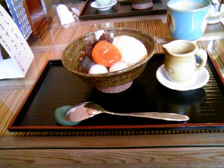良かったのは賀茂川沿い。下鴨神社までは時間足りなくて行かなかったんですが、3日目はホントあったかくて川沿い歩くには絶好の天気で、お喋りしながらのんびり歩けて楽しかったですv 途中で食べた甘味屋さんのあんみつが美味だったv(やはり食べ物/笑)