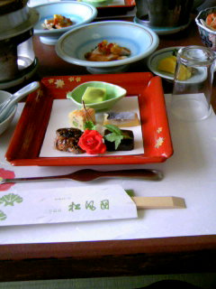 この後まだお刺身に茶碗蒸しに蒸し物1点、あとフレームに入りきってませんがすき焼き鍋とご飯とデザートも出ました。改めて見てもこれは一人分には品数多いわ; でも本当に美味しかったですけどv